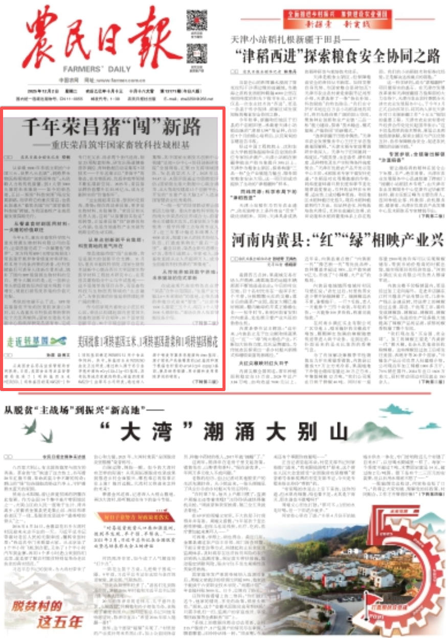 从承载1800年养殖文明的“中国三大、世界八大名猪”,到跨界生物医药领域的“创新原料库”;从依赖人力的传统猪圈,到1人管3000头猪的未来猪场——如今的荣昌猪,正以一场场“科技突围”闯出发展新路,而孕育它的重庆荣昌,也借此加速从“畜牧名城”向“国家畜牧科技城”跨越,为我国畜牧产业高质量发展探路先行。