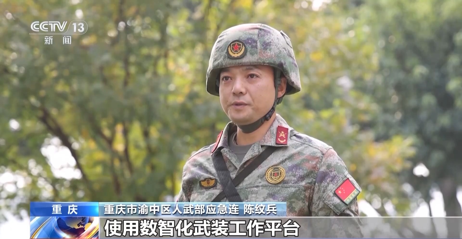 重庆市渝中区人武部应急连 陈纹兵:使用数智化武装工作平台,紧急抽组民兵、征调保障装备,更加紧贴任务所需,从以前出动准备需要4小时缩短至现在的1小时内。
