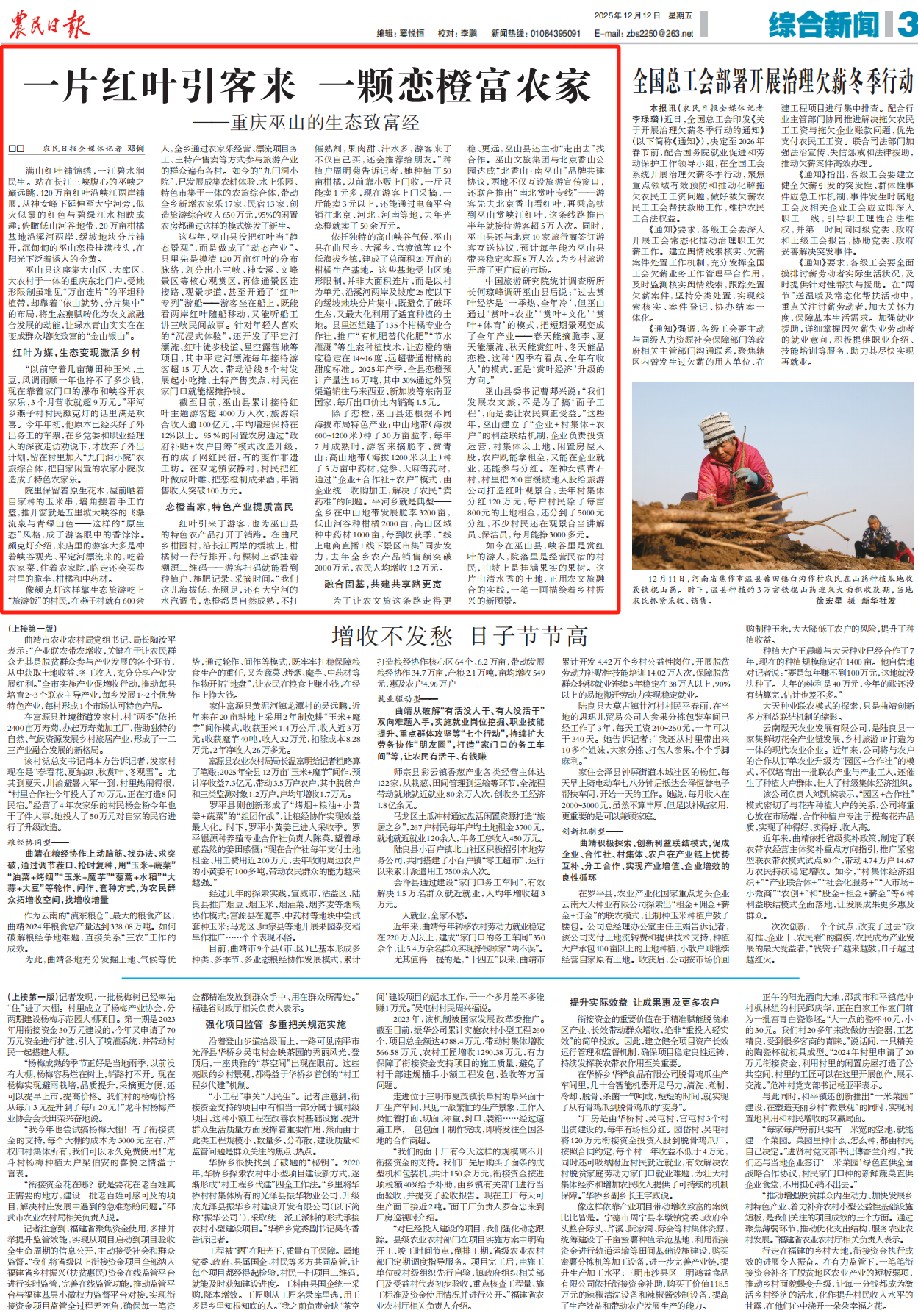如今在巫山县,峡谷里是赏红叶的游人,院落里是经营民宿的村民,山坡上是挂满果实的果树。这片山清水秀的土地,正用农文旅融合的实践,一笔一画描绘着乡村振兴的新图景。