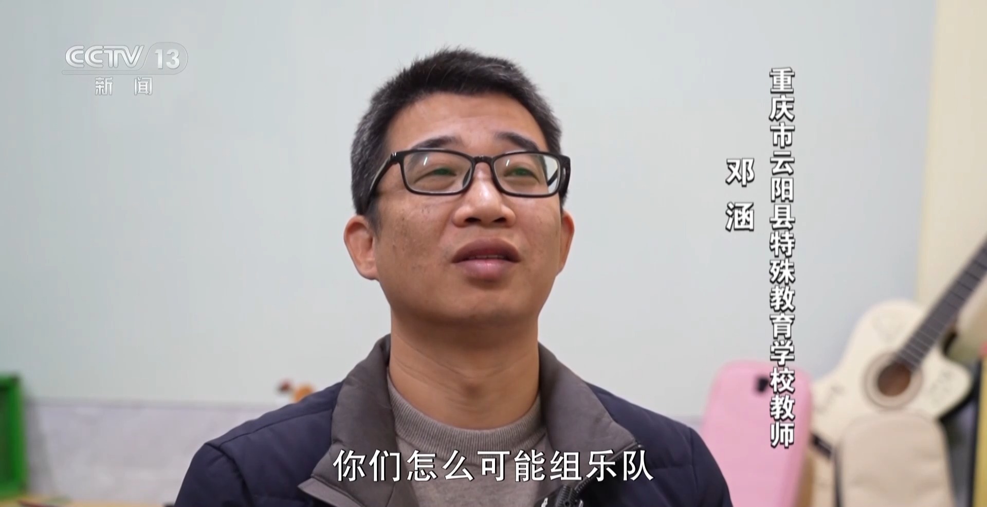 重庆市云阳县特殊教育学校教师 邓涵:其实最早我是给我家属提出来,当时家属就开玩笑说,你们怎么可能组乐队,普通学校都没有几支乐队,你们那个是完全不可能的事儿。我在教的过程当中发现两个孩子其实很不错,已经超乎了我的预期,他们的接受能力也好、对节奏的把握也好,当时确实给了我很大的惊喜和动力。