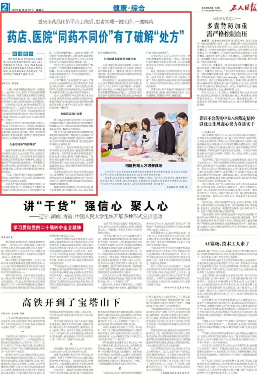 (原标题:重庆市药品比价平台上线后,患者实现一键比价、一键购药 药店、医院“同药不同价”有了破解“处方”)