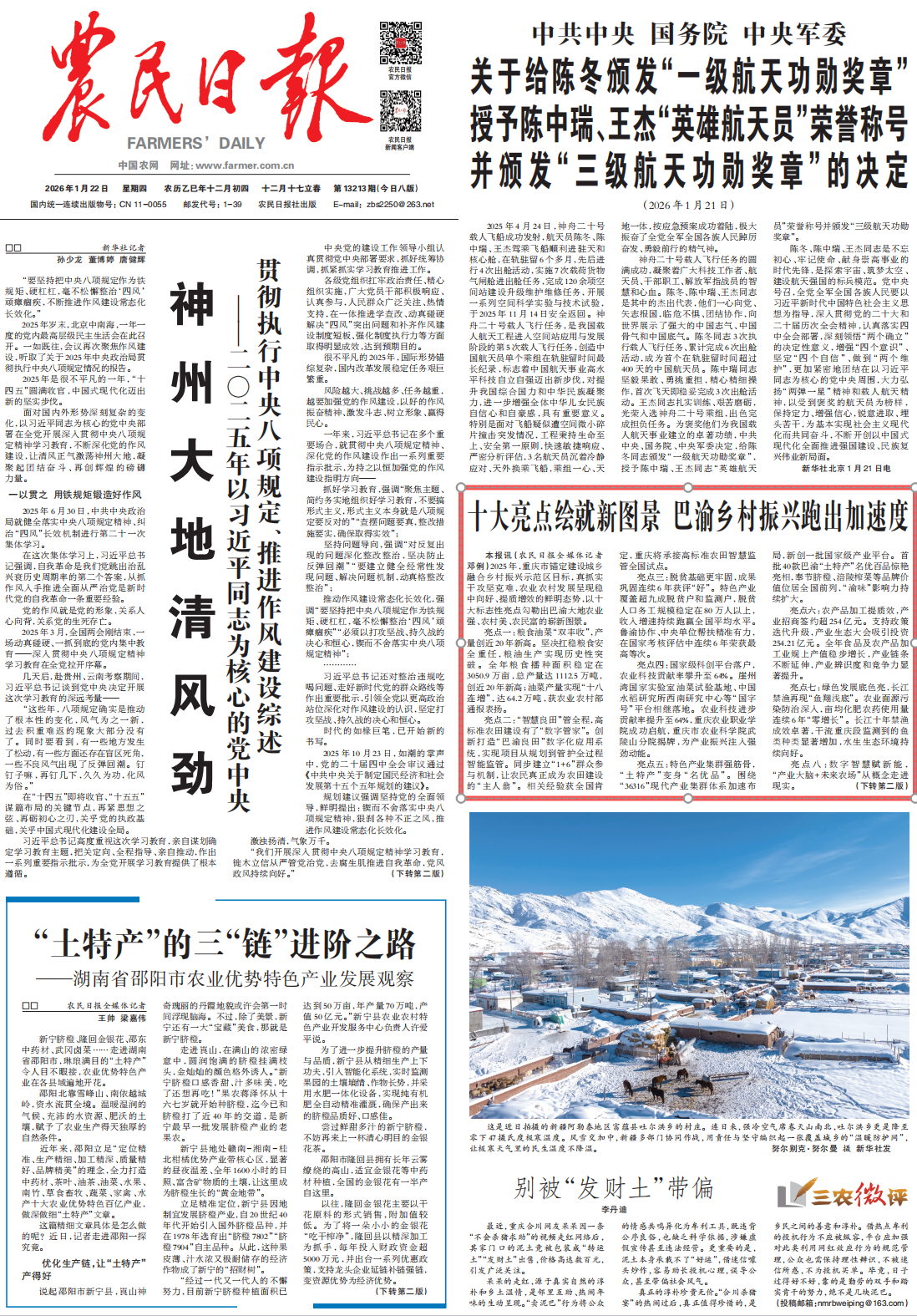 亮点八:数字智慧赋新能,“产业大脑+未来农场”从概念走进现实。生猪、榨菜等6个“产业大脑”上线运行,建成20个“未来农场”。全国首个乡村休闲旅游AI平台“乡游悠”正式发布,数字技术正深刻改变巴渝乡村的生产与生活。