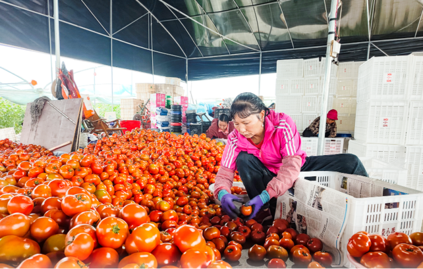 日头渐高,又一辆满载番茄的货车缓缓驶出基地。车厢里的一片火红,在春日暖阳下格外明亮。