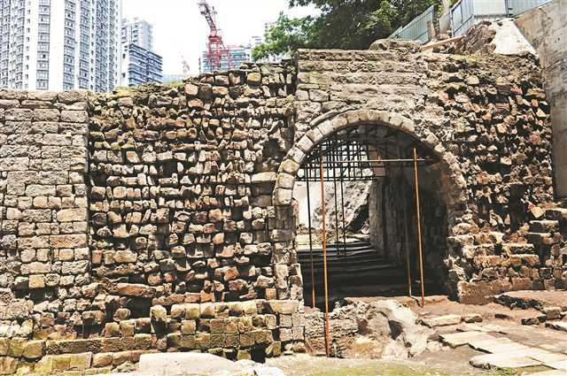 在渝中区下半城白象街路口通往长江边的路上,有一段残垣断壁似乎被人遗忘。