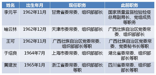 今年已有五省份组织部部长调整