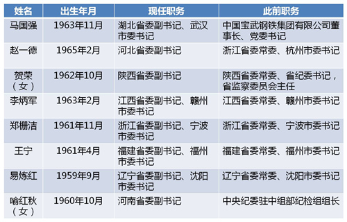 从现任职务来看,湖北的马国强、江西的李炳军、浙江的郑栅洁、福建的王宁和辽宁的易炼红5人都还兼任市委书记职务。湖北省委副书记马国强兼任武汉市委书记,江西省委副书记李炳军兼任赣州市委书记,浙江省委副书记郑栅洁兼任宁波市委书记,福建省委副书记王宁兼任福州市委书记,辽宁省委副书记易炼红兼任沈阳市委书记。