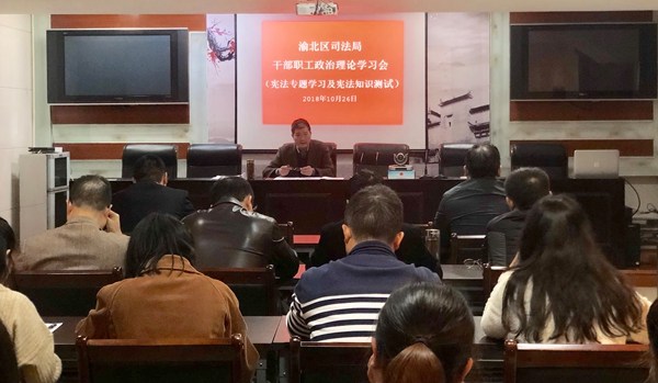 今天上午,渝北区司法局机关干部职工宪法知识闭卷考试成绩揭晓,唐兴全、张光华等12人获得满分。10月26日上午,渝北区司法局党委书记、局长聂国倡就我国宪法修改的重点内容及其重大历史意义等对干部职工进行了专题辅导。辅导结束后,全局34名干部职工进行了宪法知识闭卷考试,此次考题来自“千万市民学宪法题库”,采取单人单桌,专人阅卷。