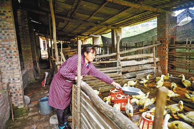 图④:蜂水村贫困户卢传芬在杨骅帮扶下走上了养殖脱贫的道路。记者 万难 摄
