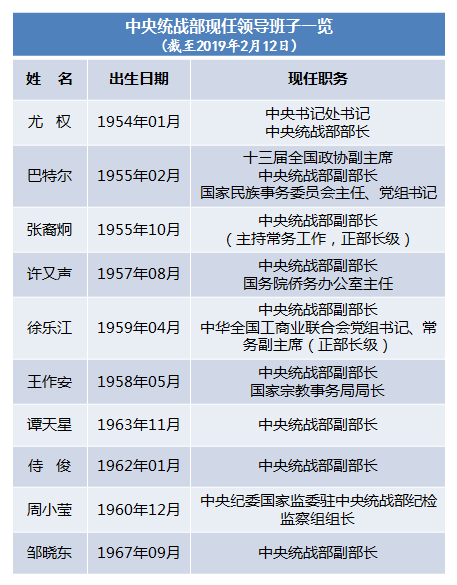 观察 | 近期中央统战部领导"一进一出" 现任班子一览
