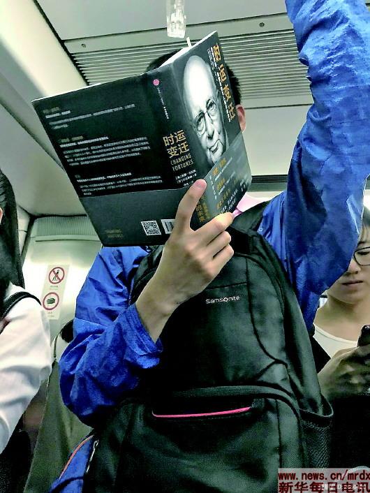 乘客在地铁上读书的画面,在很多人印象中,仿佛只存在于国外。不少人对国内地铁乘客的印象,基本上是一律都在玩手机。哪有人读书?尤其是上下班高峰时的地铁,大家挤得都快悬空了,哪有空间给人读书?在这样逼仄的环境里,又有谁能静下心来读书?