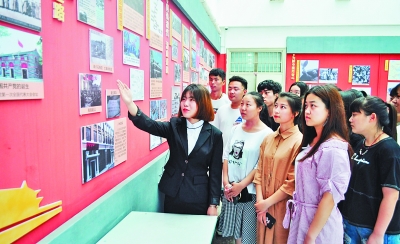 近年来,河北工业职业技术学院在思政课教学中,将红色文化作为文化自信教育的原动力,引导广大师生做社会主义核心价值观的坚定信仰者、积极传播者、模范践行者。图为该校学生在校内自建的“红色文化展馆”参观。成和平摄/光明图片