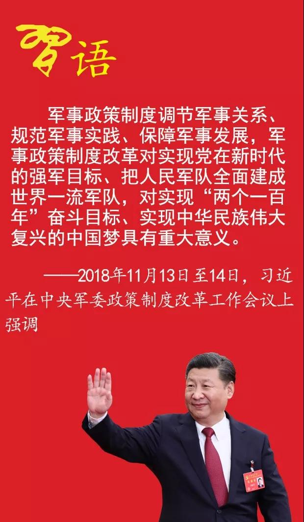 ——2018年11月13日至14日,习近平在中央军委政策制度改革工作会议上指出