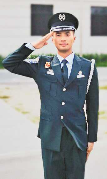 重庆日报记者在采访时,程杰为记者演示了踢正步的模样。