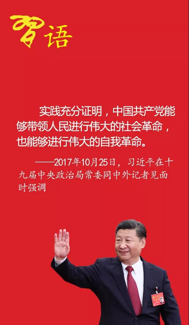 在新时代,我们党必须以党的自我革命来推动党领导人民进行的伟大社会革命。我在党的十九大报告中强调:“把党建设成为始终走在时代前列、人民衷心拥护、勇于自我革命、经得起各种风浪考验、朝气蓬勃的马克思主义执政党。”这既是我们党领导人民进行伟大社会革命的客观要求,也是我们党作为马克思主义政党建设和发展的内在需要。