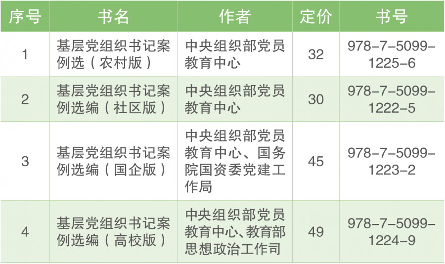 为帮助广大基层党组织书记掌握应知应会的基本知识和操作实务、学习借鉴先进基层党组织的鲜活经验,中央组织部党员教育中心组织编写了“基层党组织书记培训教材”,作为“全国党员教育培训教材”之一。这套教材知识性、指导性、实用性强,既可作为基层党组织书记普遍轮训、集中培训和任职培训的基本教材,也可作为基层党组织书记的自学教材。