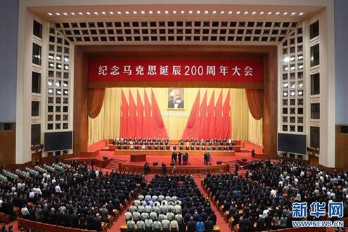 ▲2018年5月4日,纪念马克思诞辰200周年大会在京举行,习近平总书记发表重要讲话 新华社发
