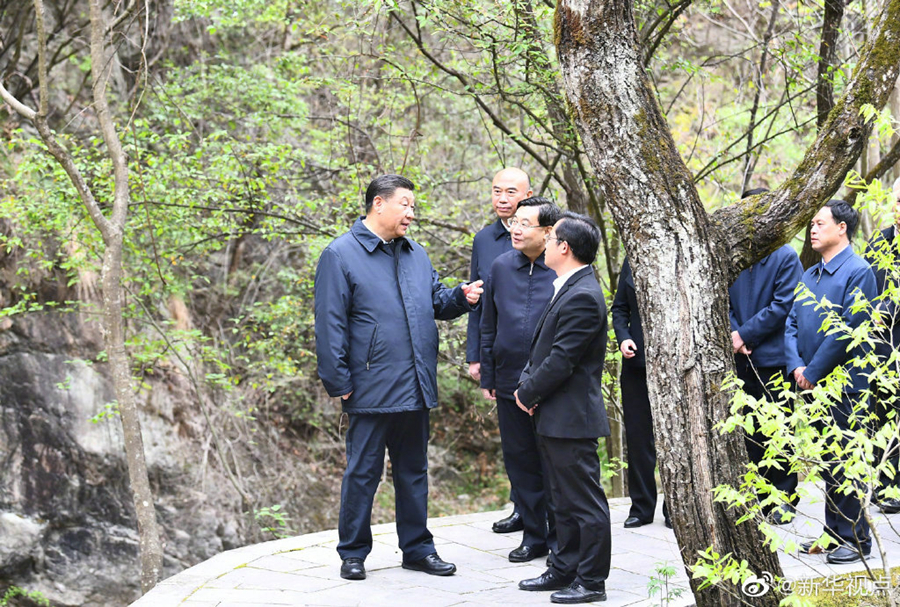 ▲2020年4月20日,习近平总书记在商洛市柞水县的秦岭牛背梁国家级自然保护区,考察秦岭生态保护情况 新华社记者鞠鹏/摄