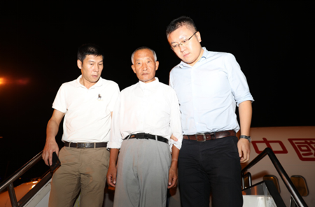 办案检察官将葛宝伟(中)带出青岛流亭机场 图片来源:正义网