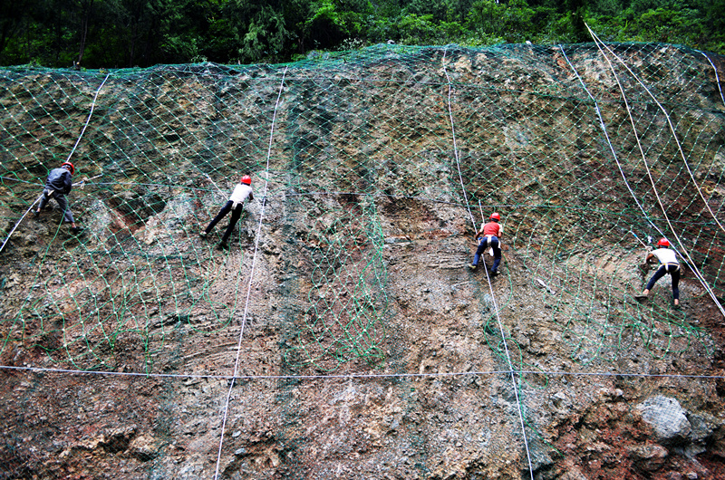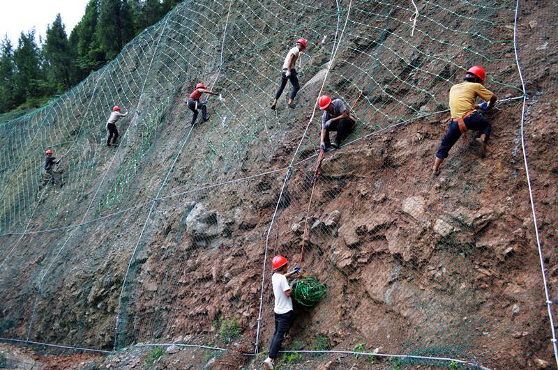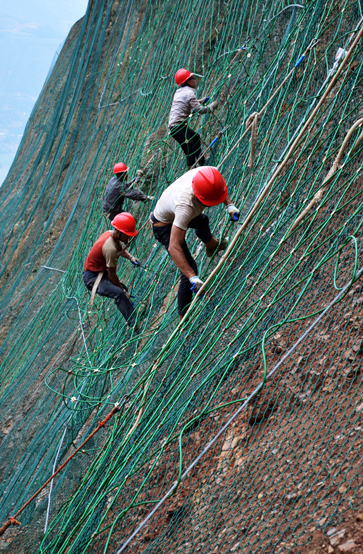 据悉,这条竣工通车的道路是奉节直通三峡之巅和巫山机场的高等级旅游专线公路,高切坡、长边坡、急转弯多,沿途面临地质熔岩、滑坡、落石等多种安全隐患。随着夏日汛期来临,为防止暴雨山洪引发次生灾害,当地迅速集结大批“蜘蛛人”,为山体打补丁、织护拦、装网格,采取加固措施,为陡峭的崖壁筑上一层“防护屏”。