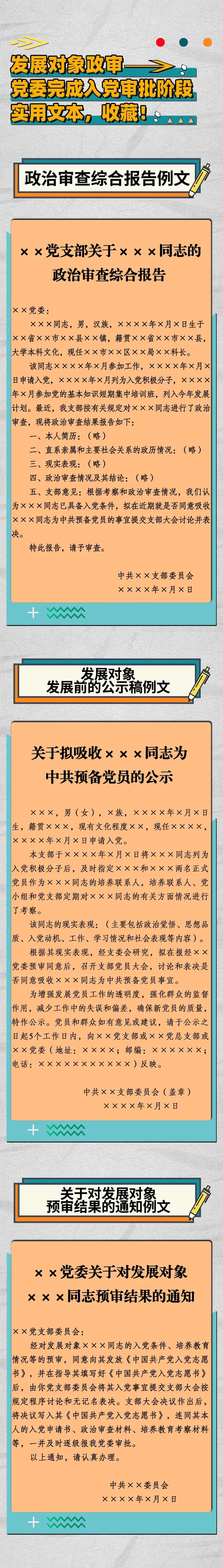 这堂课重点介绍发展对象政治审查阶段到党委完成入党审批阶段的实用文本,记得收藏哦。