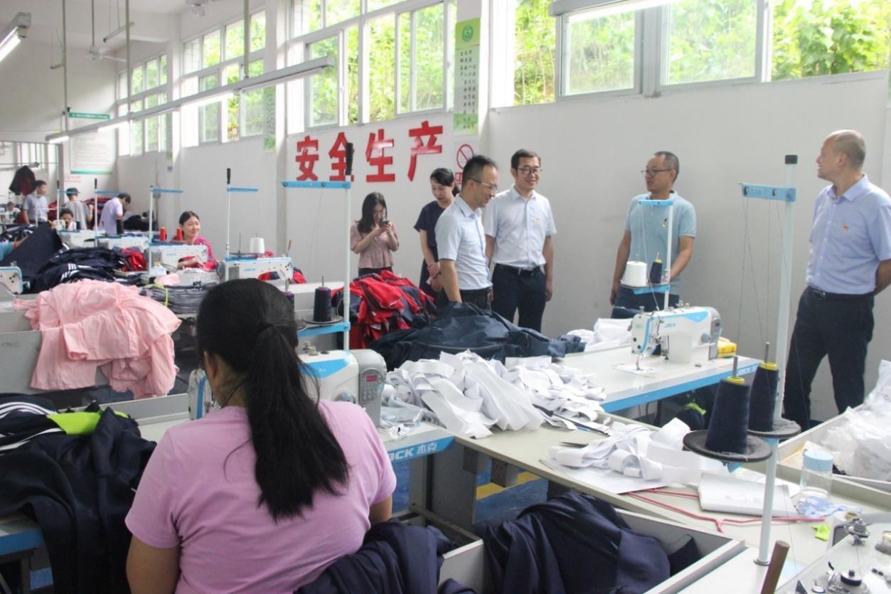(一行人参观在金溪镇开设的服装厂 图\王妮)