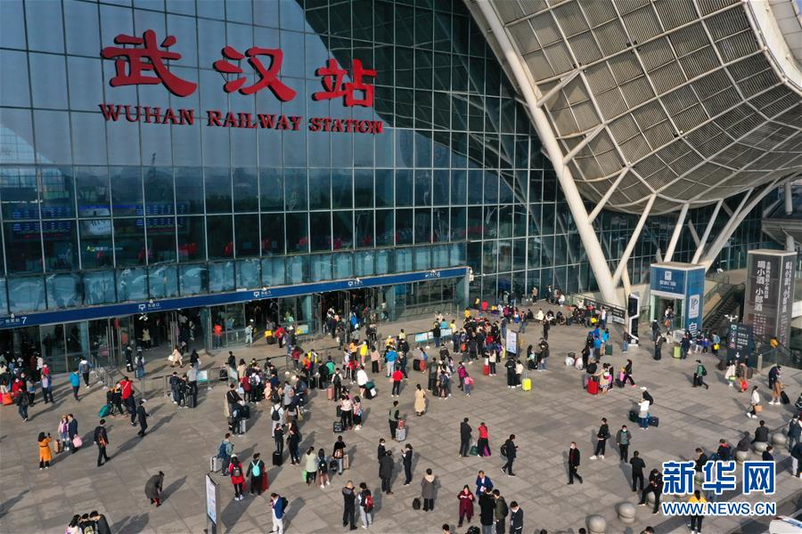 ▲ 旅客在武汉火车站东广场准备进站乘车(10月8日摄,无人机照片)。新华社发(赵军摄)