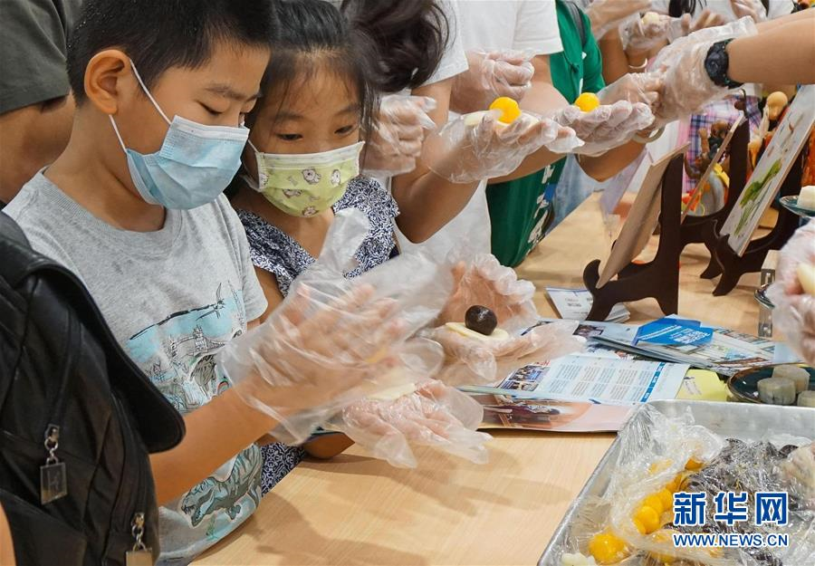 ▲ 游客在广州市北京路步行街“粤菜师傅项目技能交流展示区”体验做月饼(10月1日摄)。新华社记者 刘大伟 摄