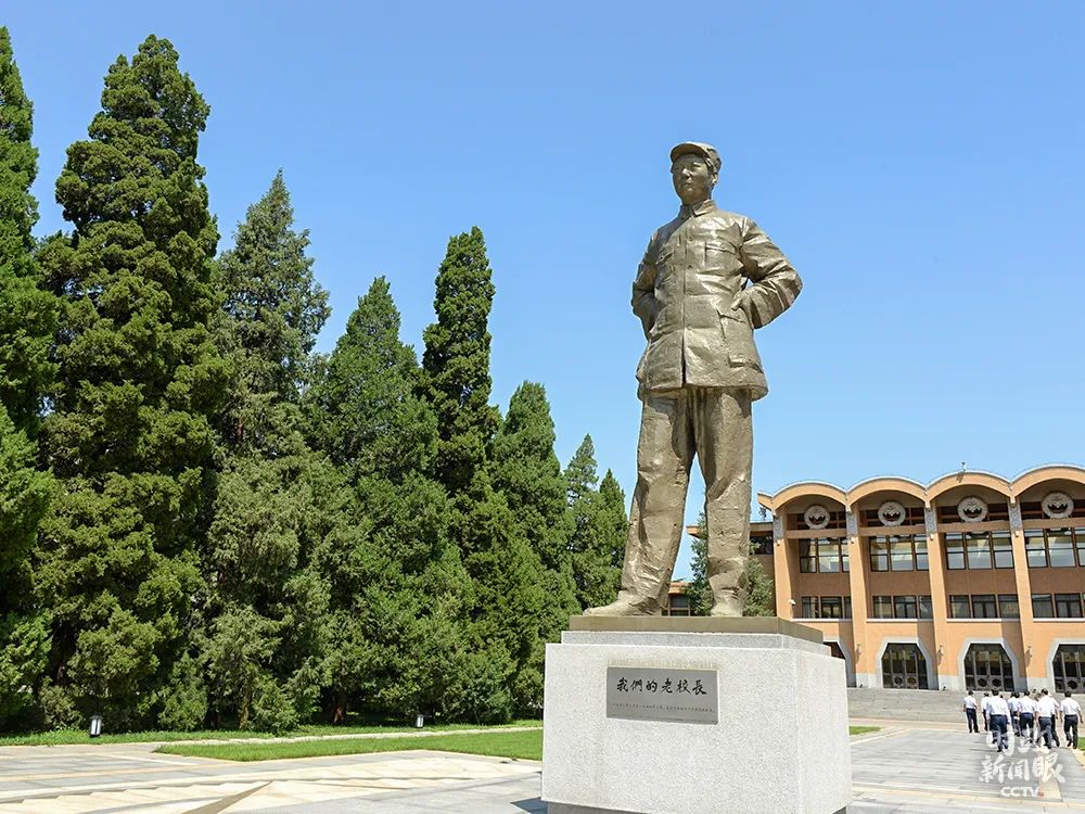 △矗立在礼堂前广场的毛泽东全身雕像:《我们的老校长》