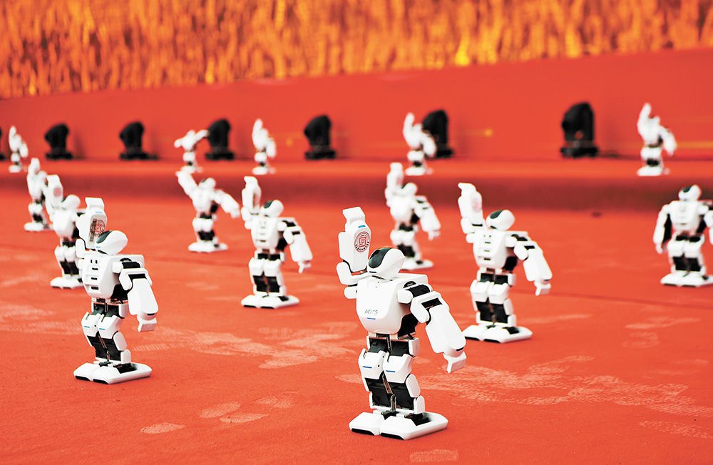 十月十二日,智能机器人在重庆智能工程职业学院揭牌暨华为(永川)联合技术创新中心投用仪式上进行舞蹈表演。新华社记者 王全超 摄