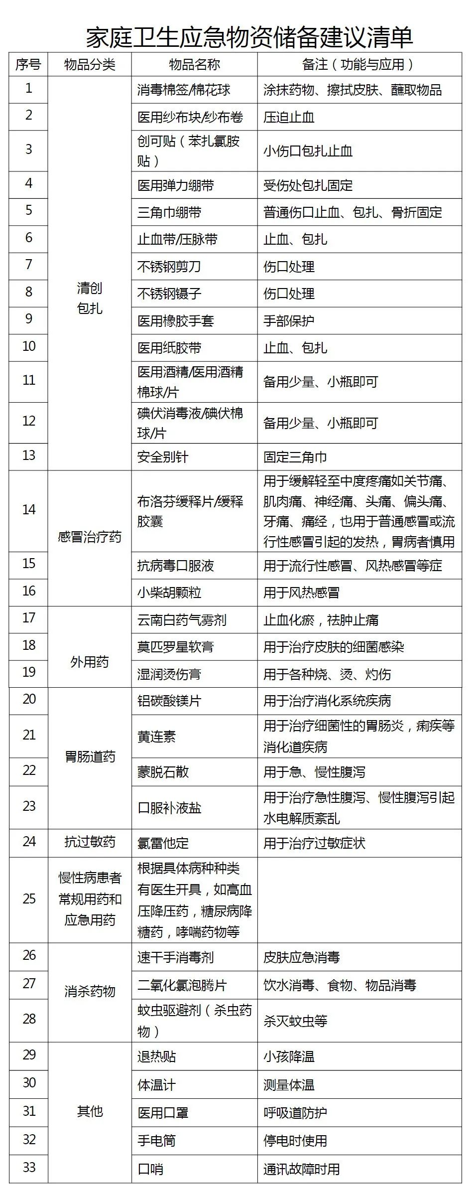 为加强家庭应对突发事件卫生应急能力,我委组织专家制定了广东省家庭卫生应急物资储备建议清单(附后)。