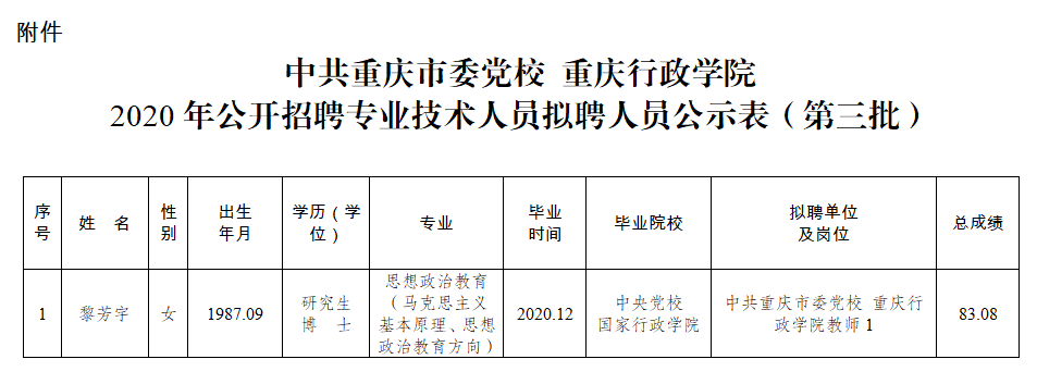 附件:中共重庆市委党校 重庆行政学院2020年公开招聘专业技术人员拟聘人员公示表(第三批)