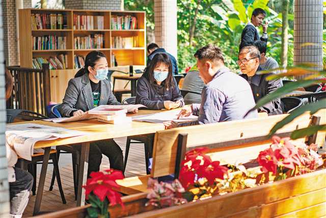 二月二十二日,江北区南方上格林小区,党群驿站内,党员们在一起学习党史。记者 崔力 摄\视觉重庆