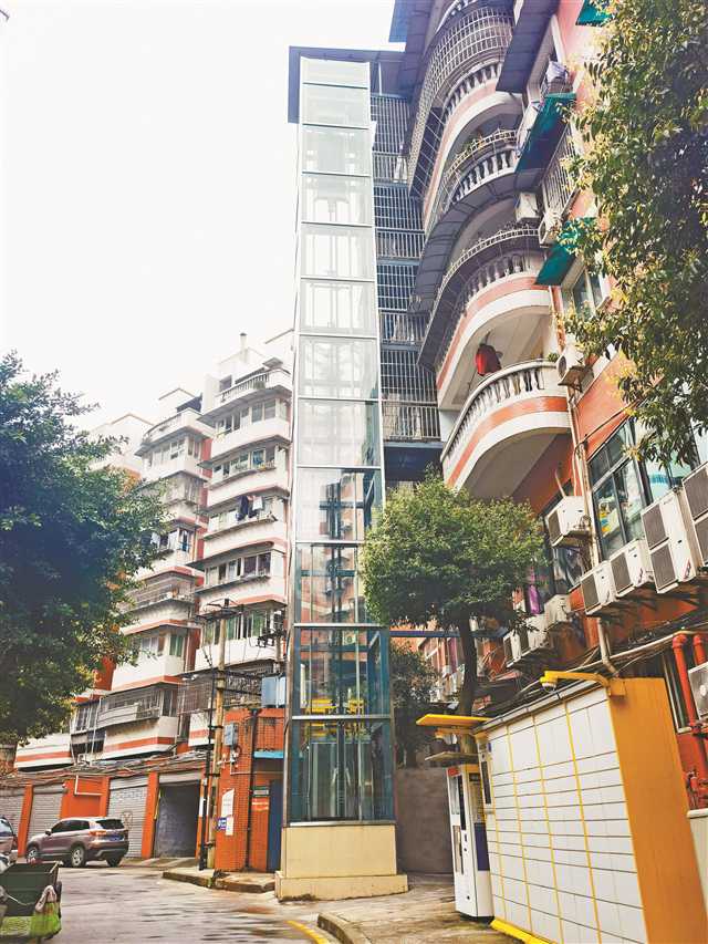 昔日远近闻名的“老、破、乱”小区,因全面的修整翻新,加上新装的透明观景电梯,如今俨然有了花园洋房小区的格调。