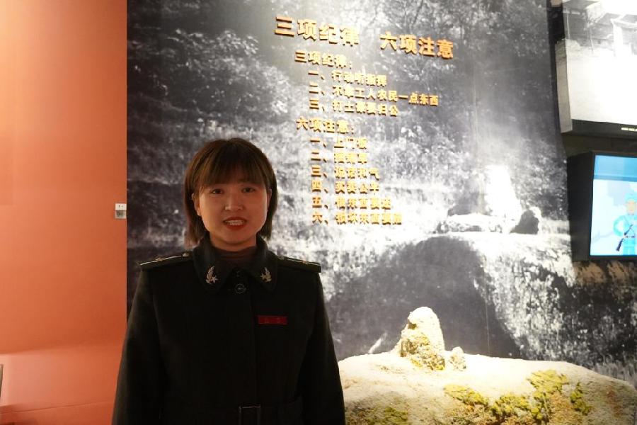 井冈山革命博物馆讲解员龙艳正在讲解。新华社记者 姚子云 摄