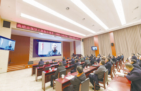 图为云南省曲靖市组织领导干部召开警示教育大会,集中观看反腐警示专题片《围猎:行贿者说》,为党员干部剖析围猎机理,总结蜕变者遭受围猎的原因和教训。徐天德 摄