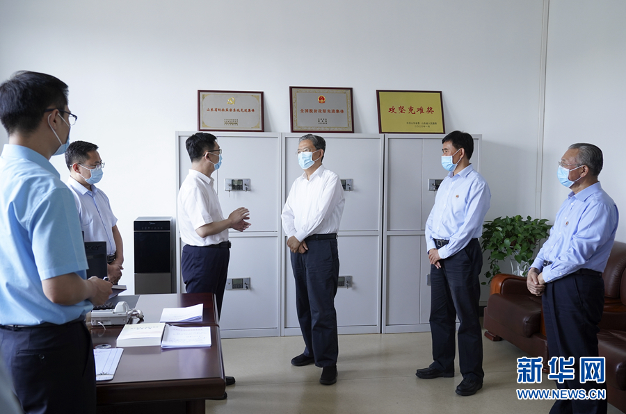 6月6日至8日,中共中央政治局常委、中央纪委书记赵乐际到山东调研。这是6月7日,赵乐际在山东省纪委监委机关,看望机关干部,了解工作进展情况。新华社记者 张领 摄