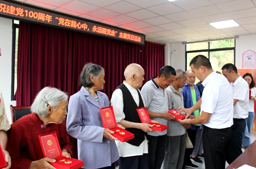 随后,村两委和驻村工作队干部为光荣在党50年的老党员颁发荣誉证书和纪念奖章。“这是组织对我这50余年奋斗的充分肯定,感谢组织对我们这些老党员的关怀。”有着53年党龄的蹇俊儒同志激动地说,“今后我一定会不忘初心、牢记使命,继续发挥余热,支持村里工作,为党的事业奋斗终身!”