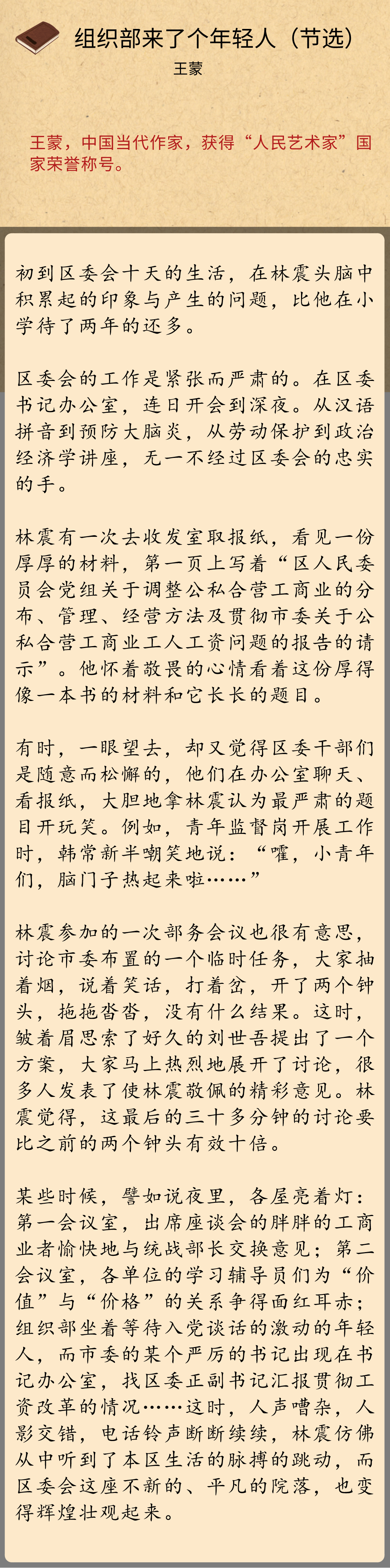 王蒙:《组织部来了个年轻人》