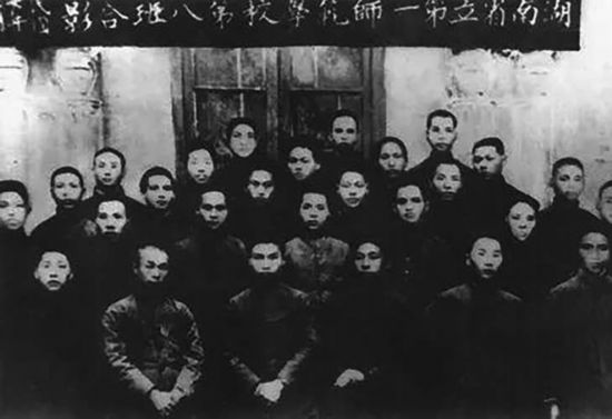毛泽东和湖南第一师范同学在一起。