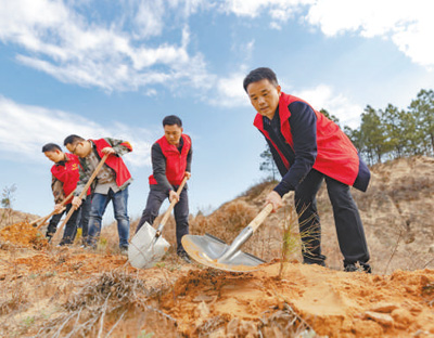 江西庐山市蓼南乡的党员干部正在种植湿地松。韩俊烜摄(人民视觉)