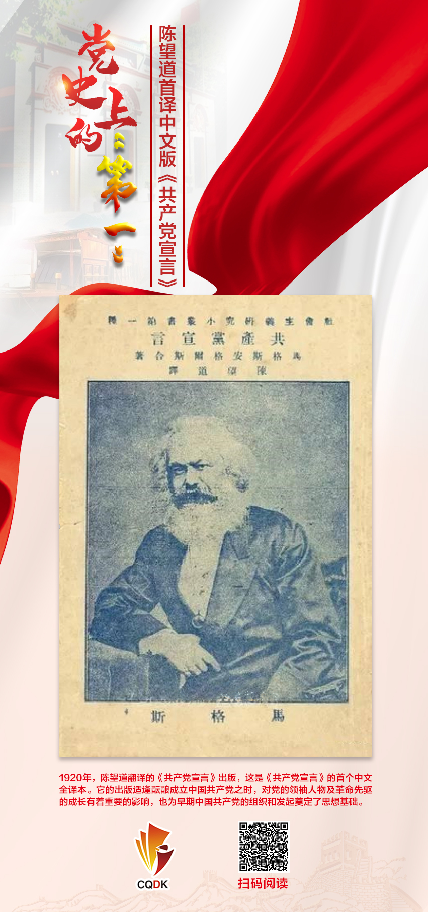 1920年初,陈独秀与《民国日报》副刊《觉悟》的编辑邵力子等人商量翻译《共产党宣言》的人选。当时,《共产党宣言》已有德、英、法、日文等多种版本,要准确地将其译成中文,这要求译者不但要精通德语、英语等,还须具备较高的中文水准,熟知欧洲历史、社会状况等,更要思想进步、立场坚定,信仰马克思主义。那么,谁能担此重任呢?邵力子慎思良久说:“能承担此任者,非杭州陈望道莫属。”