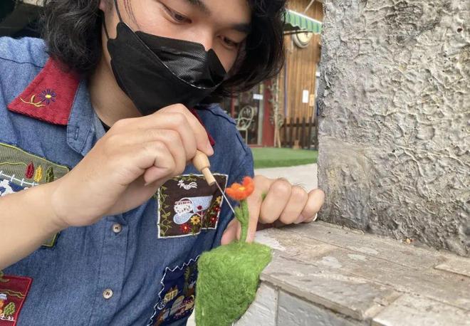 除开“小花侠”的称号,罗盛天的真实身份是广州美术学院雕塑专业毕业班的学生。在软材料课上,罗盛天第一次接触到羊毛毡,他觉得羊毛毡制作的东西很温柔,所以一直运用这种材料进行实验和创作。