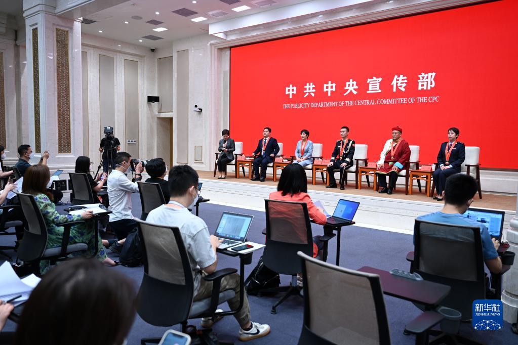 8月31日,中共中央宣传部举行“奋进新征程 建功新时代”系列中外记者见面会,5位“人民满意的公务员”代表围绕“做人民公仆 为人民服务 让人民满意”的主题与媒体记者畅谈自身工作经历与体会感悟。新华社记者 金良快 摄