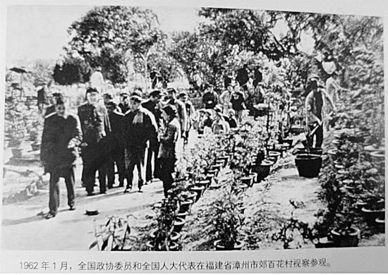 1962年1月,全国人大代表和全国政协委员在福建省漳州市郊百花村视察参观。