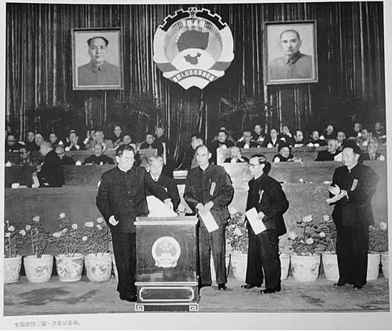 为了便于政协委员参与国事,根据毛泽东的提议,二届全国人大一次会议和全国政协三届一次会议同期召开。