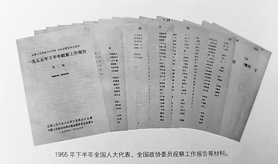根据毛泽东的提议,全国人大常委会和全国政协作出了《人大代表、政协委员关于1955年秋后视察工作的通知》,组织全国政协委员同全国人大代表一起到各地视察。从11月中旬开始到12月为止,进行了一个多月的时间,全国人大代表和全国政协委员在全国各地视察。视察内容有农业合作化、粮食生产、粮食统购统销、落后乡的改造、工商业的生产经营、私营工商业的社会主义改造、街道工作和“肃反”工作等问题,政协委员还把各地有关知识分子的问题列为视察的重点。