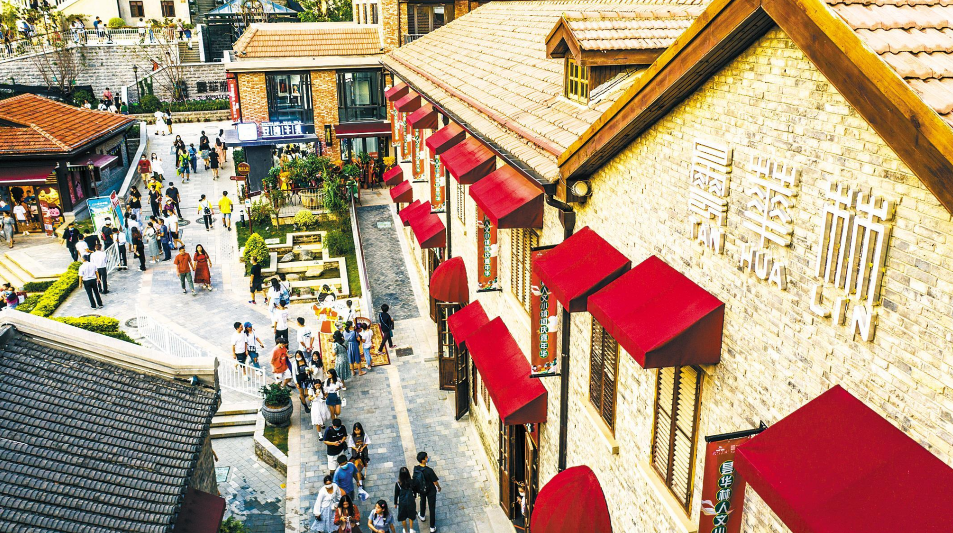 凤凰山上,三三两两的游客流连于灰墙红瓦的一幢幢百年老建筑间,细品咖啡、打卡拍照。