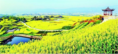 重庆垫江明月山下金灿灿的油菜种植基地生意盎然。向晓秋摄/光明图片