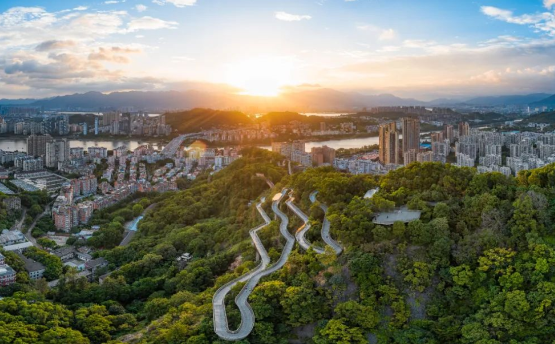“福道”,指的是福州城市森林步道,一头连接城市,一头连接自然。漫步“福道”,好似行走林梢上,穿梭森林间,满眼皆绿,处处是景,环山看城,城在山中。