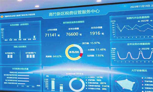 高竹新区税费征管服务中心累计提供线上线下办税缴费服务超20万笔,资料报送率减少26%,办税时间缩短约60%